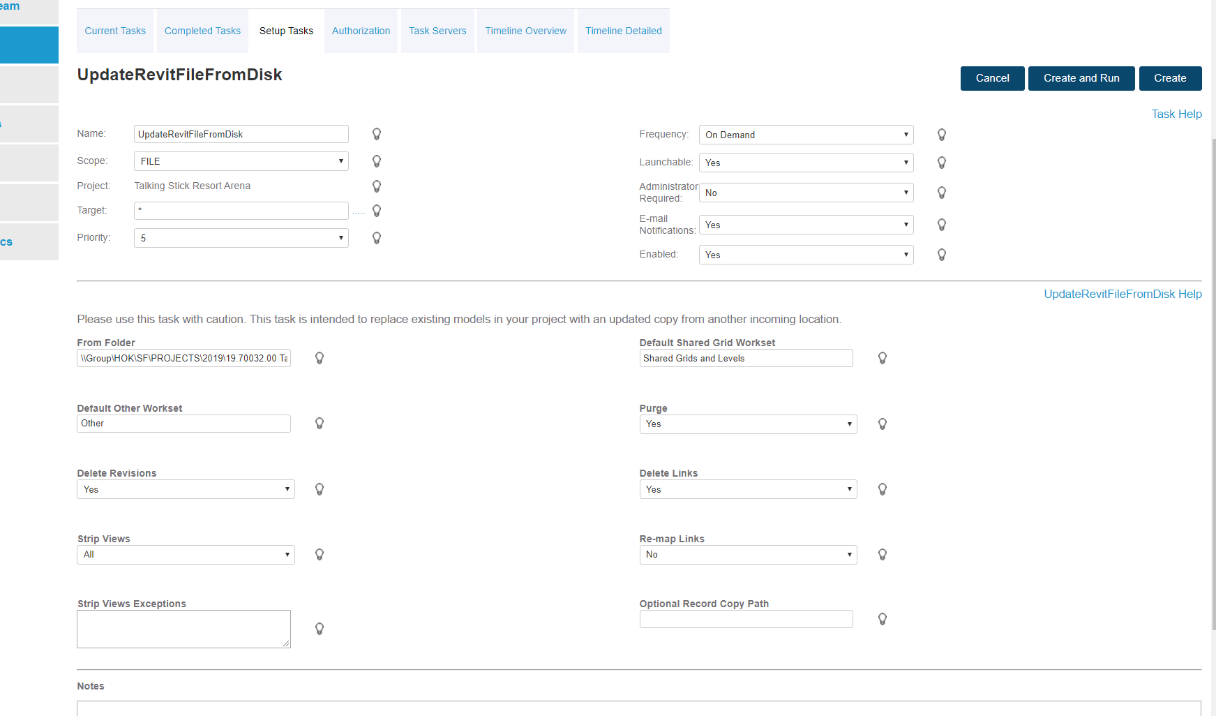 With the UpdateRevitFileFromDisk task - using the FILE scope, the idea is that you're running the task against existing models in your project - and then looking for a corresponding file in the folder that will be used to replace it.