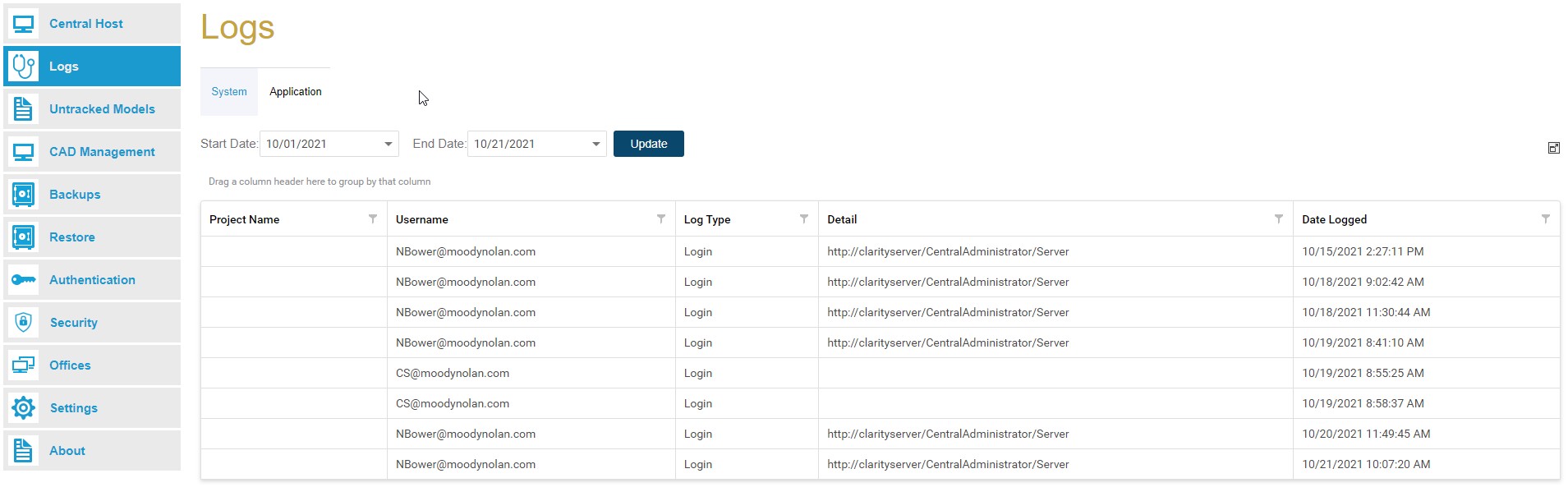 If you go to the Server / Logs page, then within that, there's a tab called "Application".