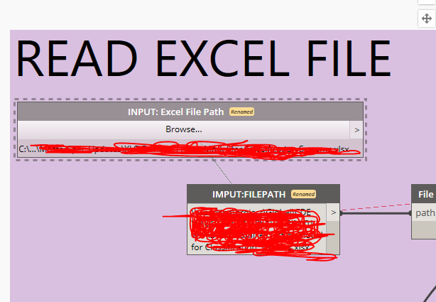 for example in the image attached, either the excel file path can be a UI option or if its a file path with string the user can provide the path on clarity as Input when script is run. so that they wont have to go & change the path within the script - save as & run script again incase of change in path. Could the Input nodes be made as UI to help ease the process.