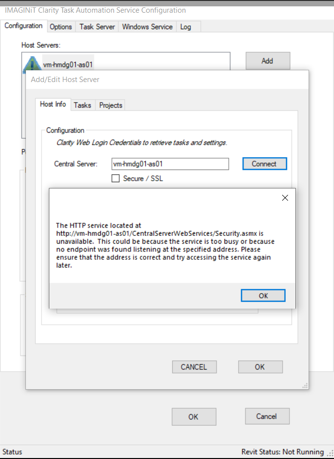 Tasks are no longer running. Server is saying that it is invalid. I'm not sure how to fix this. Please see attachments. Please let me know if I need to add further log files.