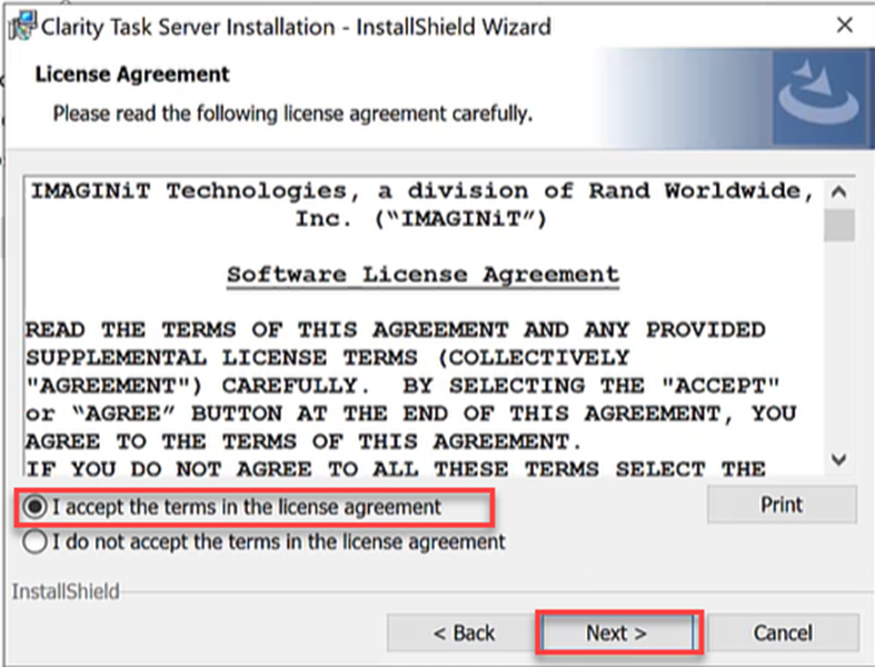 4. Verify that the Clarity account has full control permission to the C:\Program Files\IMAGINiT Technologies folder, if not, add full control for that account specifically.