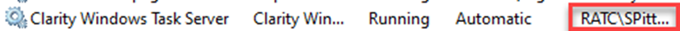 3. Exit the Clarity Task tray and stop the Clarity Windows Task Server Service in Services. Note the identity assigned to the service in case it needs to be reset after the install.