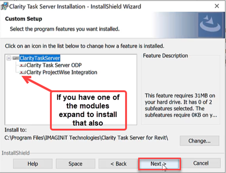 8. If you have customized any config files, make a backup of them, or create a copy of this folder:  C:\Program Files\IMAGINiT Technologies\Clarity Task Server for Revit and place it on the desktop, rename it to Clarity Backup in case we need to reference changes later.  Also backup the ClarityTaskService.config from this folder:  C:\ProgramData\IMAGINiT Technologies\Clarity Task Server 202#