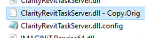 • C:\Program Files\IMAGINiT Technologies\Clarity Task Server for Revit\<Revit version>\ClarityRevitTaskServerdll.config