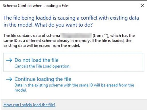 There is a way to say “Continue Loading” for this kind of Schema Conflict dialog.