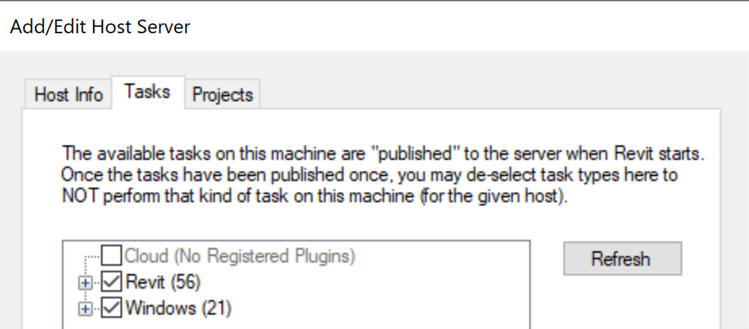 You cannot mix Revit task server tasks with Windows task server tasks, they must be the same task processor type task.