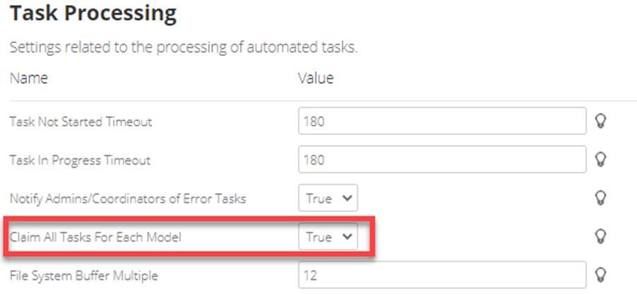 Claim all tasks for each model, will process all tasks in the queue for that same model when set to True, so whichever task server grabs it, it will do all of the tasks for that model.