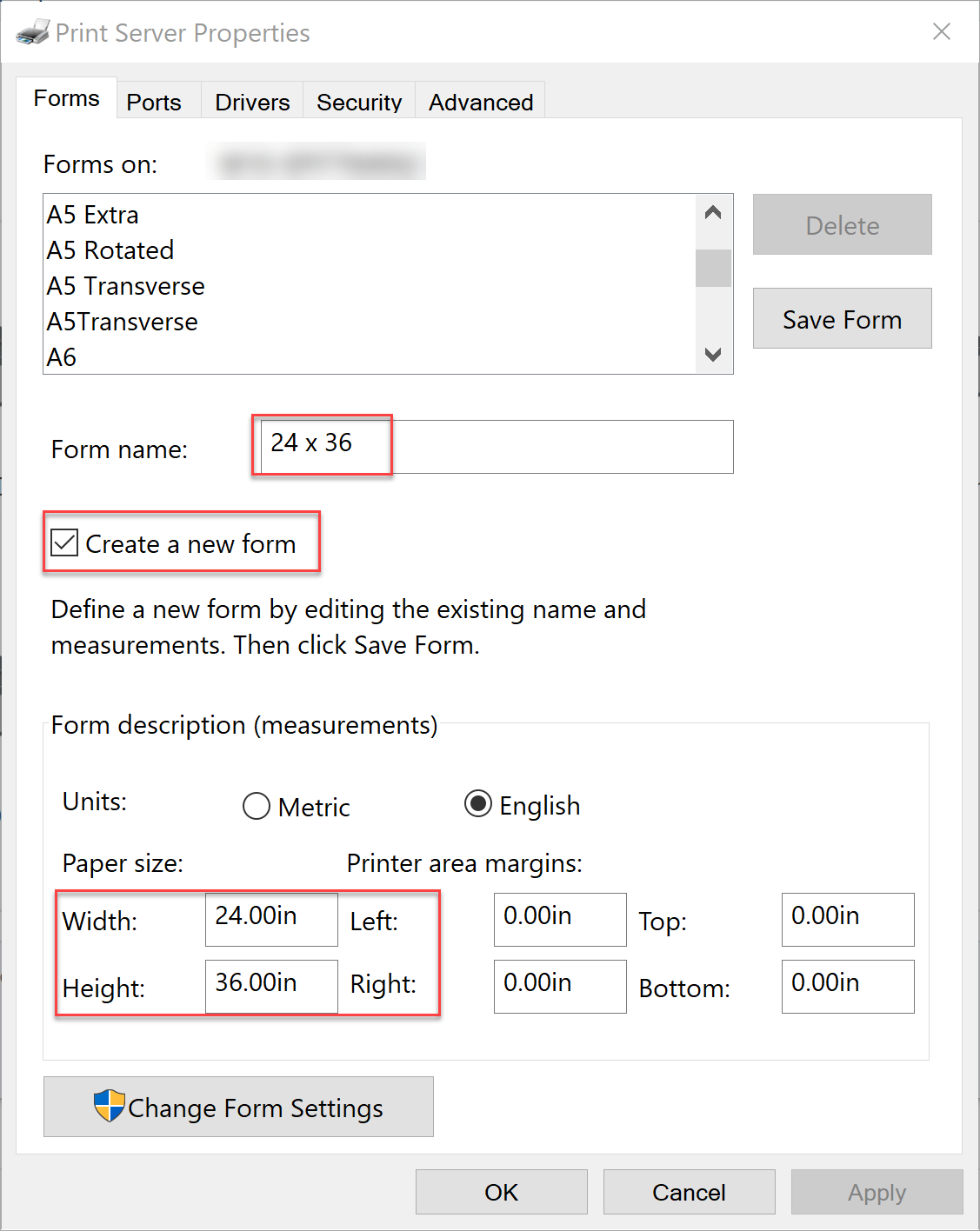 • Enter name and dimensions (These are intentionally entered backward in here)