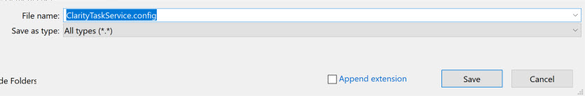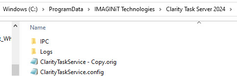• Make a backup of the ClarityTaskService.config file and save it with .orig