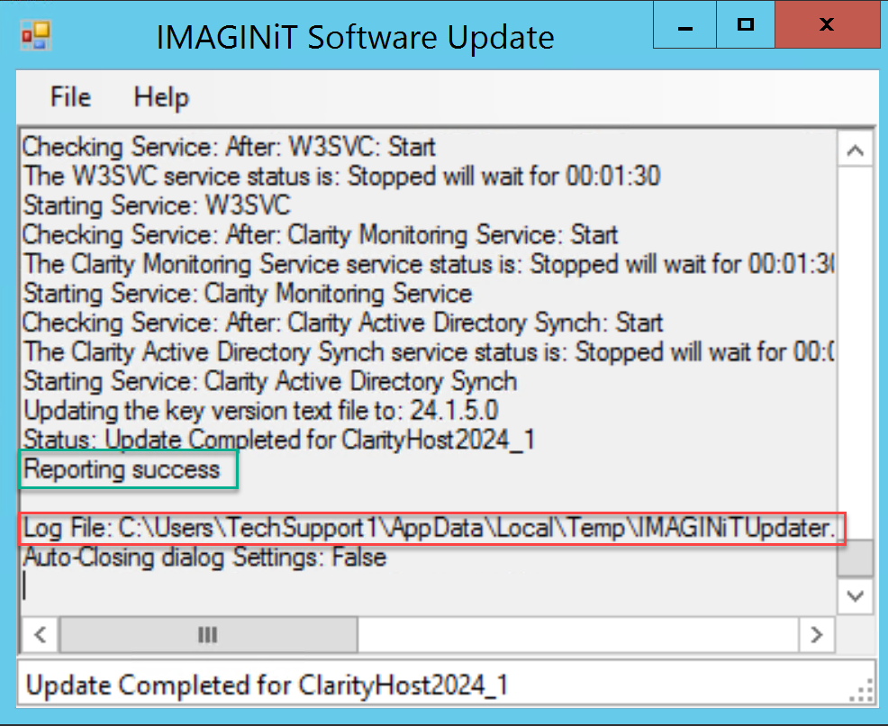 When the update completes, it will indicate if it succeeded or failed.