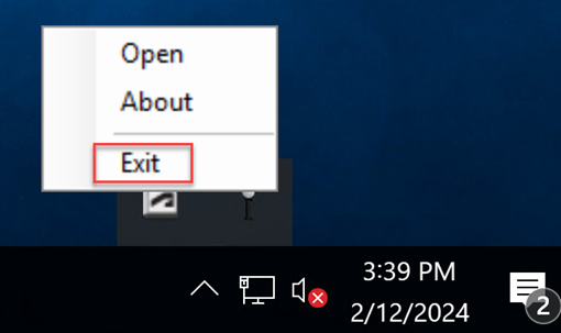 Exit the Clarity Task Tray by right clicking on the icon in the Windows Task Tray and select Exit