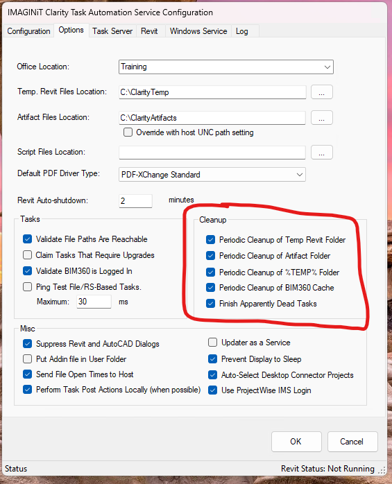 How can I check config file for cleanup settings related to options in dialog box attached?